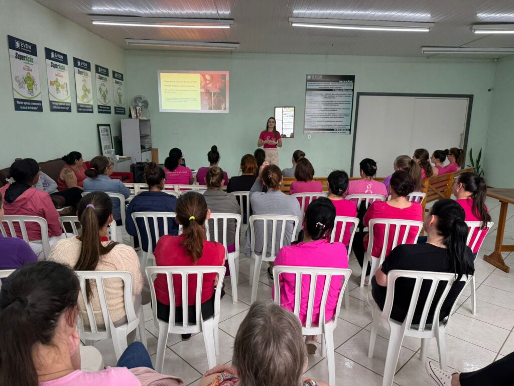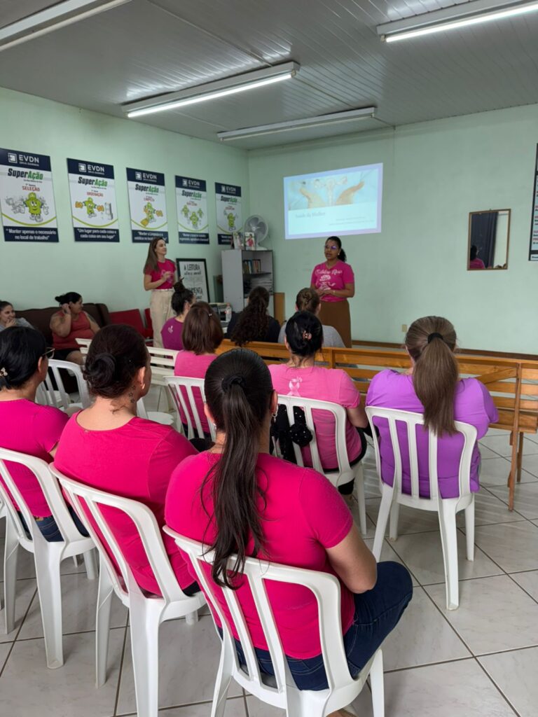 A Erva Daninha promoveu, nesta semana (28) uma importante ação de conscientização em apoio ao Outubro Rosa, mês dedicado à prevenção e ao diagnóstico precoce do câncer de mama. A presidente da entidade, Meri Ranzan, e a enfermeira Maireli Pereira, trouxeram informações e reforçaram a importância do autocuidado e da saúde feminina com as colaboradoras.